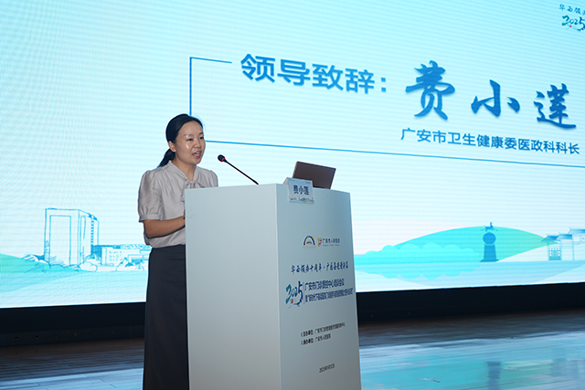随后,广安市卫生健康委医政科科长费小莲发表讲话。她充分肯定了广安市门诊质控中心自成立以来的工作成效,强调本次培训是贯彻落实国家“改善就医感受、提升患者体验”主题活动的具体举措,希望同仁共同构建优质高效的广安门诊服务体系。