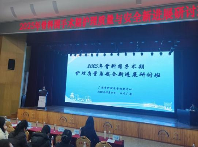 为深入推进护理专业化建设,全面提升骨科围手术期护理质量管理水平,推动患者安全与加速康复外科(ERAS)理念深度融合,2025年12月21日,由广安市护理质量控制中心主办、广安市人民医院承办的“2025年骨科围手术期护理质量与安全新进展研讨班”在广安市人民医院学术厅圆满举行。本次研讨班汇聚全市各级医疗机构护理骨干约100人,共同探讨骨科护理前沿进展,共话专业发展新路径。