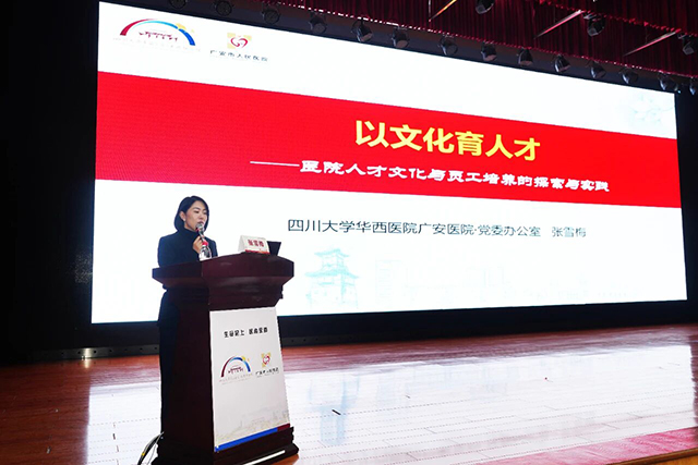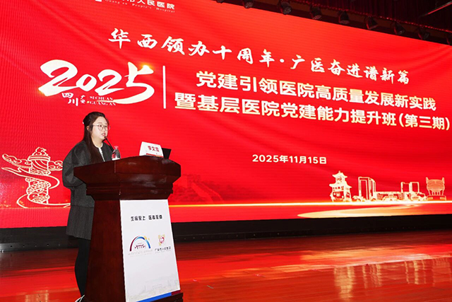 华西广安医院党委办公室主任张雪梅、门诊部副主任张欣、党委办公室党建科副主任李文雪分别就医院行风建设、文化育才、党务实操等主题展开专题分享,将理论知识与实践案例深度融合,为基层党务工作提供可操作、可复制的经验模板。