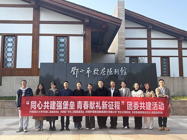11月28日至29日,四川大学华西第二医院、成都高新区妇女儿童医院团委来广与广安市人民医院、中国移动四川广安分公司举办“同心共建强堡垒 青春献礼新征程”团委共建活动。团市委相关负责人陪同参加相关活动。