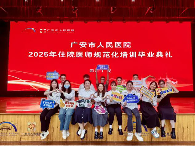 近日,广安市人民医院举行2025年住院医师规范化培训结业典礼。医院党委副书记、院长李运革,党委委员、副院长顾永林出席典礼,带教师资代表及2022级全体住院医师240余人齐聚一堂,共同见证这一庄重时刻。院党委专职副书记、副院长文俊杰主持典礼。