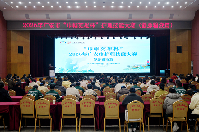 2月25日,由广安市护理质量控制中心、广安市医学会护理学分会主办,我院承办的2026年“巾帼英雄杯”护理技能大赛(静脉输液篇)在我院学术厅圆满落下帷幕。广安市卫生健康委员会、市护理质控中心、市医学会护理学分会相关领导及专家出席大赛。来自全市各市直医疗机构及区市县的11支参赛队伍、33名优秀护理骨干同台竞技,百余名护理同仁现场观摩交流。
