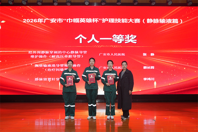 本次大赛不仅是一场技能的对决,更是一次专业素养的集中检阅与行业标准的深度推广。通过统一评分、实操演示与赛后交流,进一步提升了全市静脉治疗操作的规范化与同质化水平。以赛强基,以优促建。我院将以此次大赛获奖为契机,持续深化竞赛成果转化,加强院内护理技能培训与内涵建设,不断提升护理专业能力,继续发挥示范引领作用,助力区域护理服务水平整体提升,为“健康广安”建设持续贡献坚实的护理力量。