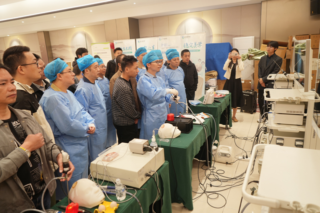 在实操环节,学员们围绕“夹豆子、夹青椒籽、磨鸡蛋”等基础技能,以及“内镜下脑血肿清除术3D打印训练模型”进行了高仿真度的模拟训练。现场学习氛围浓厚,互动热烈,为提升基层医师的内镜操作能力奠定了坚实基础。